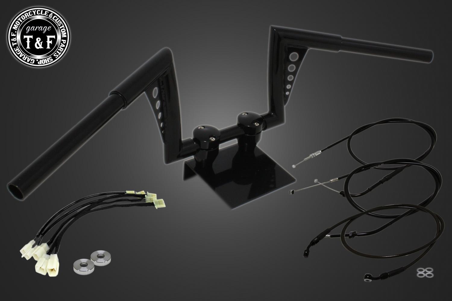 ハンドルと、適正サイズのアクセルワイヤー、クラッチワイヤー、ブレーキホース、延長ワイヤーハーネスをまとめてご用意しました。追加購入や長さ選びの心配がなく安心してハンドル交換をお楽しみいただけます。