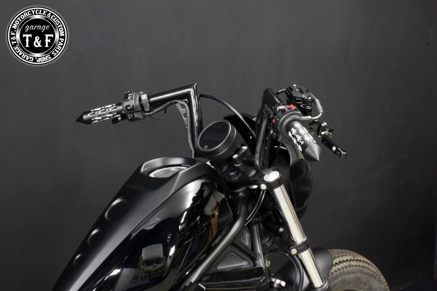 ・ハンドルの太くなっている箇所はクランプパーツ(ハンドルクランプ式ミラーやクランプ式メーターなど)が適合しない場合がございます。