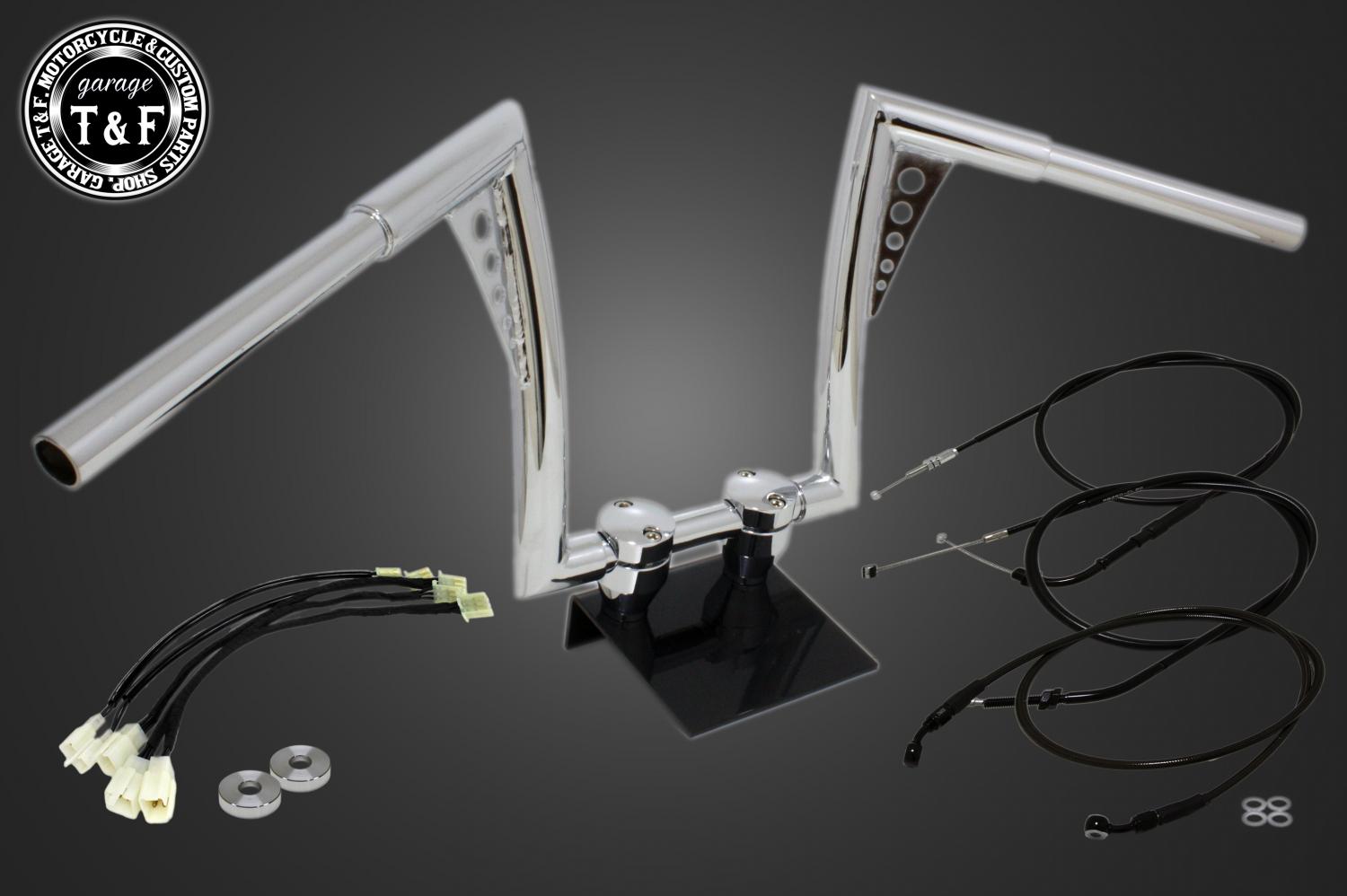 ハンドルと、適正サイズのアクセルワイヤー、クラッチワイヤー、ブレーキホース、延長ワイヤーハーネスをまとめてご用意しました。追加購入や長さ選びの心配がなく安心してハンドル交換をお楽しみいただけます。