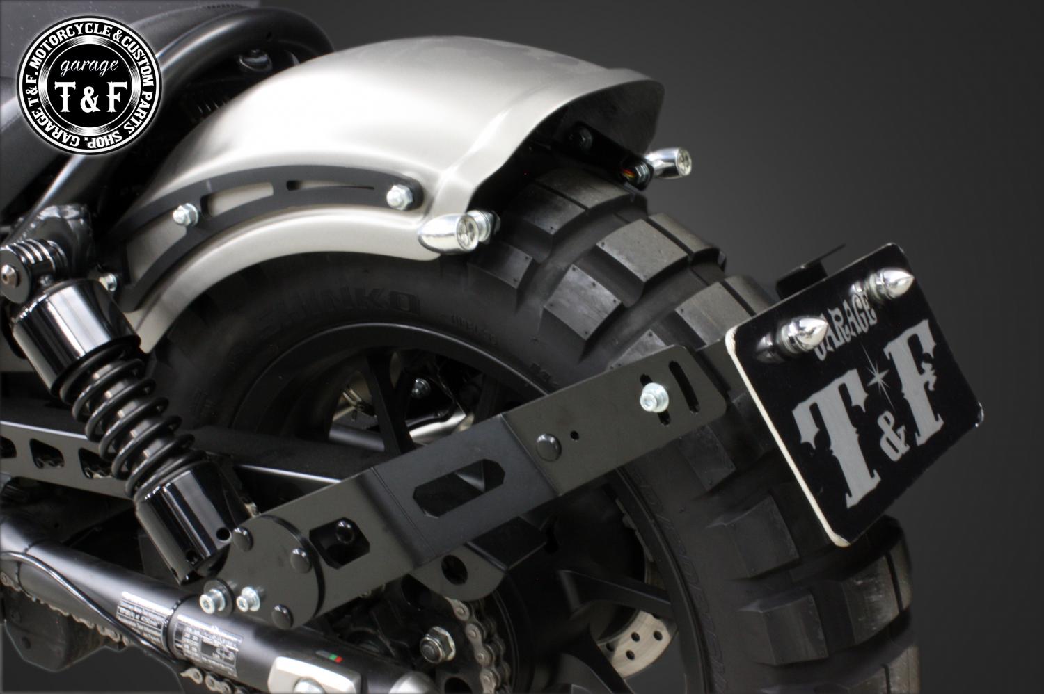 ・リア周りをすっきりと見せながら、重厚感のあるカスタムスタイルを演出します。