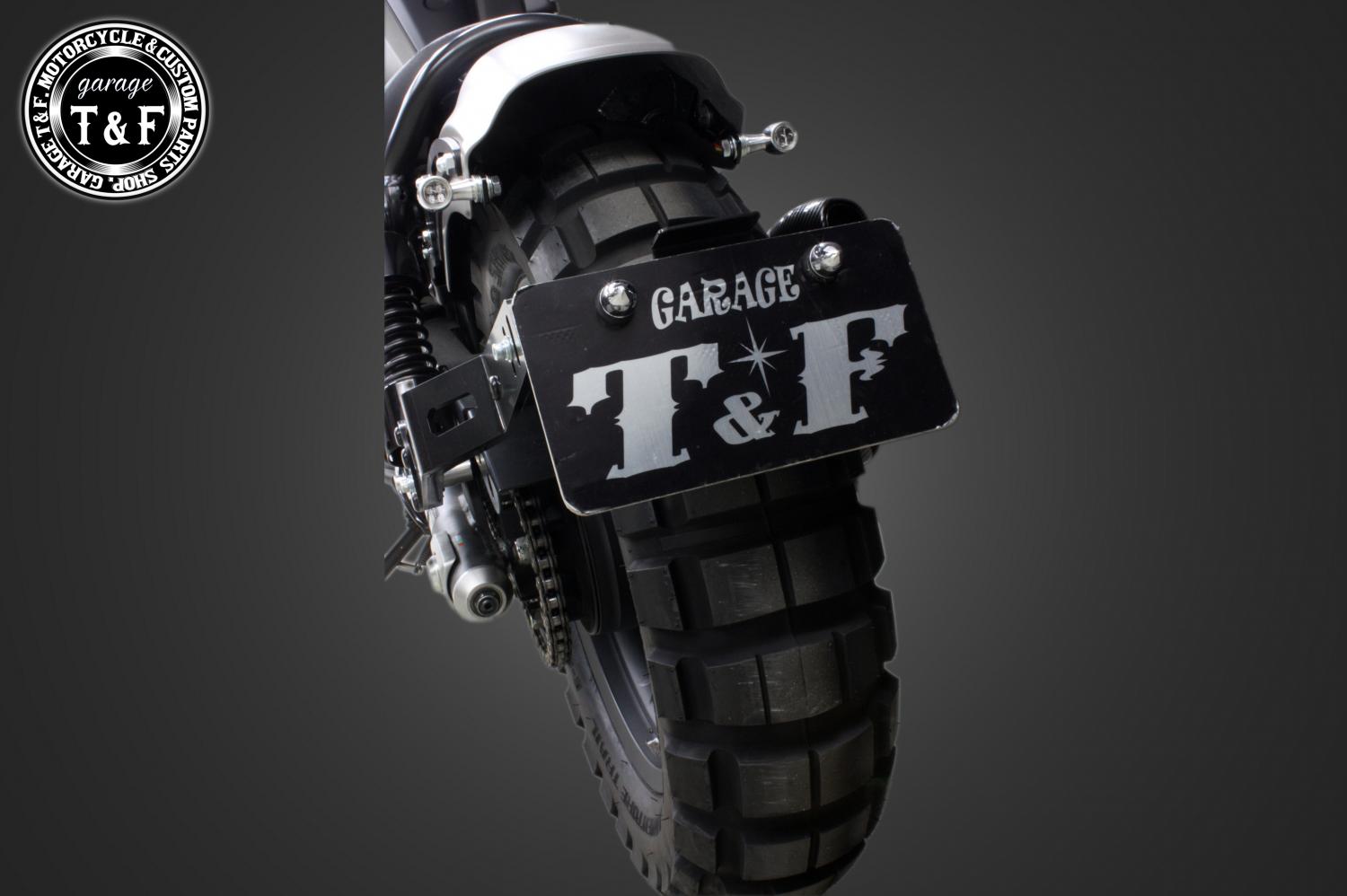・フェンダーに穴あけ不要で装着できる、センター止めタイプのナンバープレートステーです。